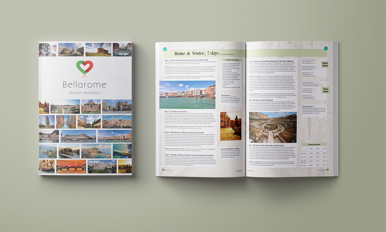 Brochure design for Italian Holiday company, Bellarome.